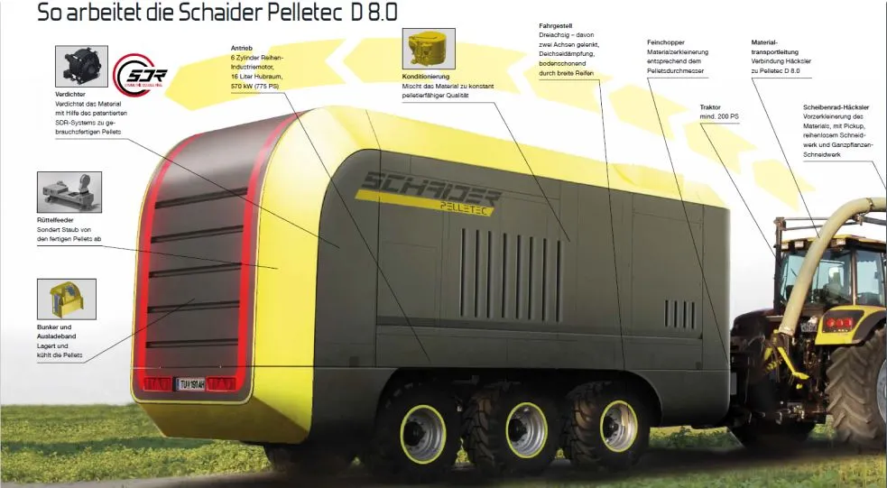 Experience the first functioning mobile pelletizing machine: dynamic, flexible and with up to 8 tons of output per hour – with minimal energy input.
